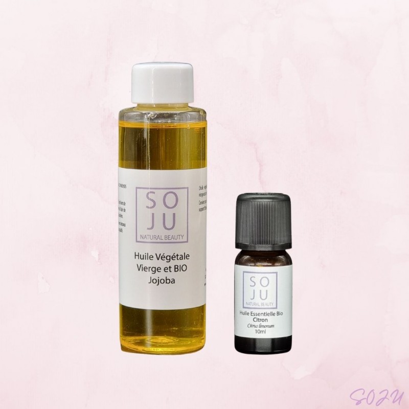 Duo Huile de Citron Bio + Huile Végétale Vierge Bio.