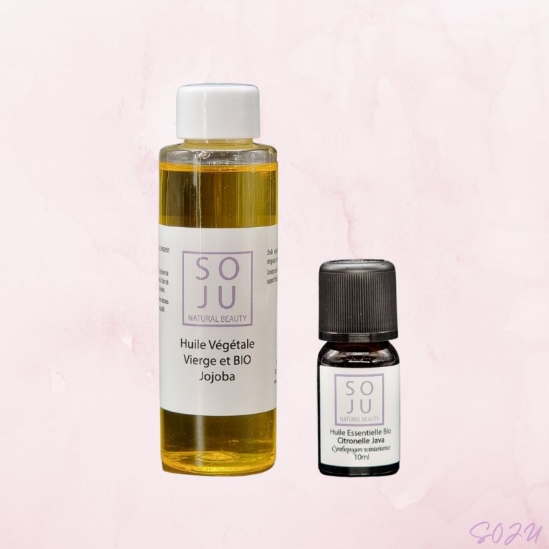 Duo Huile de Citronnelle de Java Bio + Huile Végétale Vierge Bio.